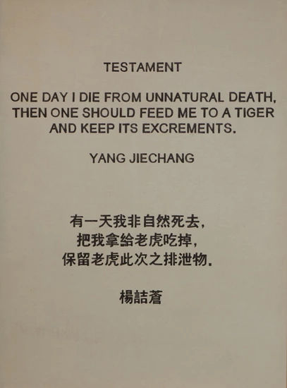 “One day, I will die a violent death. Then I will be fed to a tiger and its excrement will be preserved.”